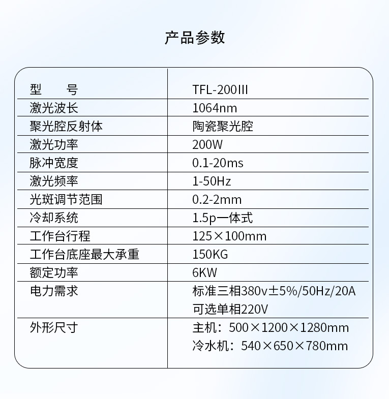 TFL-200Ⅲ型模具激光焊機(jī)是通發(fā)激光公司在TFL-180Ⅲ的基礎(chǔ)進(jìn)行了改良,采用通發(fā)自主研發(fā)的二代精密單燈電源為燈泵浦驅(qū)動(dòng)電源,配置觸摸屏,操作更方便。主機(jī)具備激光頭手搖升降與工作臺(tái)按鈕電動(dòng)升降實(shí)現(xiàn)焊接不同厚度模具的激光焊加工。本款機(jī)型更適用于各類高精密注塑模具激光補(bǔ)焊,精密塑膠模具零件激光修補(bǔ),塑膠模具鈹銅零件激光燒焊;可對模具使用過程中出現(xiàn)的磨損進(jìn)行激光修復(fù);對機(jī)械加工失誤、電火花加工失誤,模具減膠設(shè)計(jì)變更等需要對模具修改,起到關(guān)鍵的作用,可彌補(bǔ)因加工失誤造成的巨大損失。