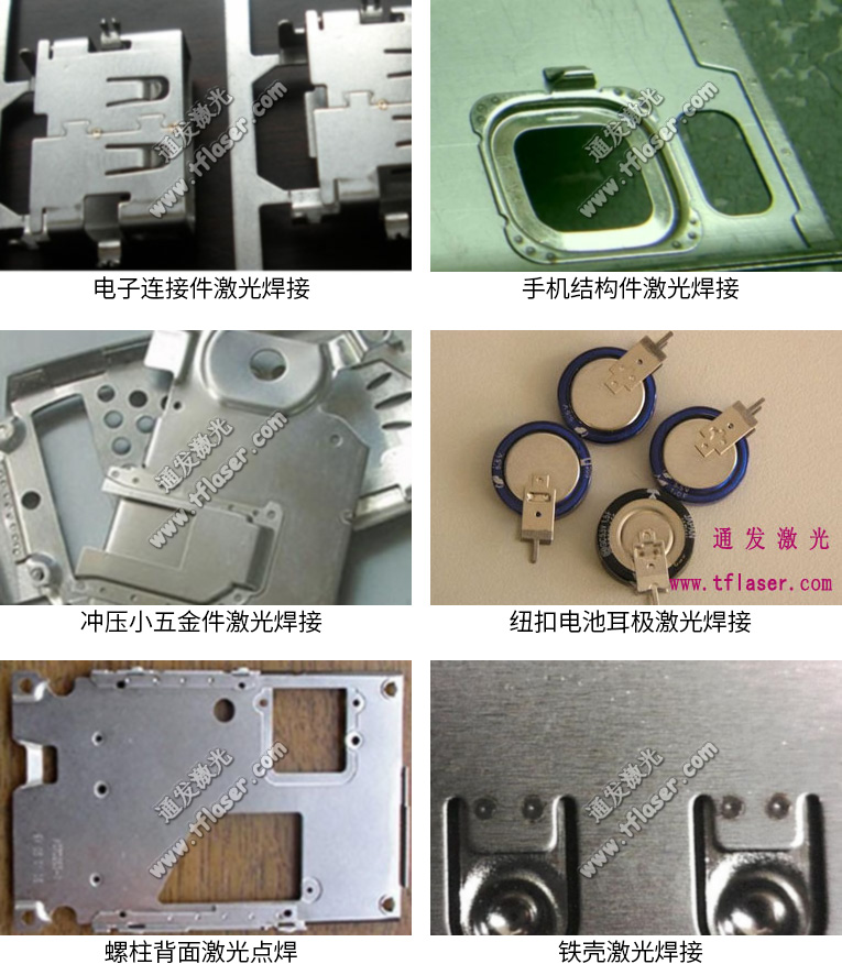 通發激光TFL-180SW振鏡式激光焊接機,采用2軸高速掃描振鏡,焊接速度是工作臺移動的5倍,滿足0.5mm以內料厚不銹鋼多點擊穿疊加焊接,也適用手機五金不銹鋼螺柱高速激光焊接加工。