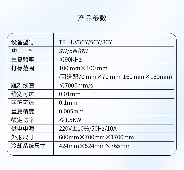 通發紫外激光打標機聚焦光斑極小,可進行超精細打標,最小字符可到0.1MM,冷加工,熱影響極小,不會有明顯燒痕,非常適合柔性材料、玻璃PCB標識、特殊材料等高品質打標加工